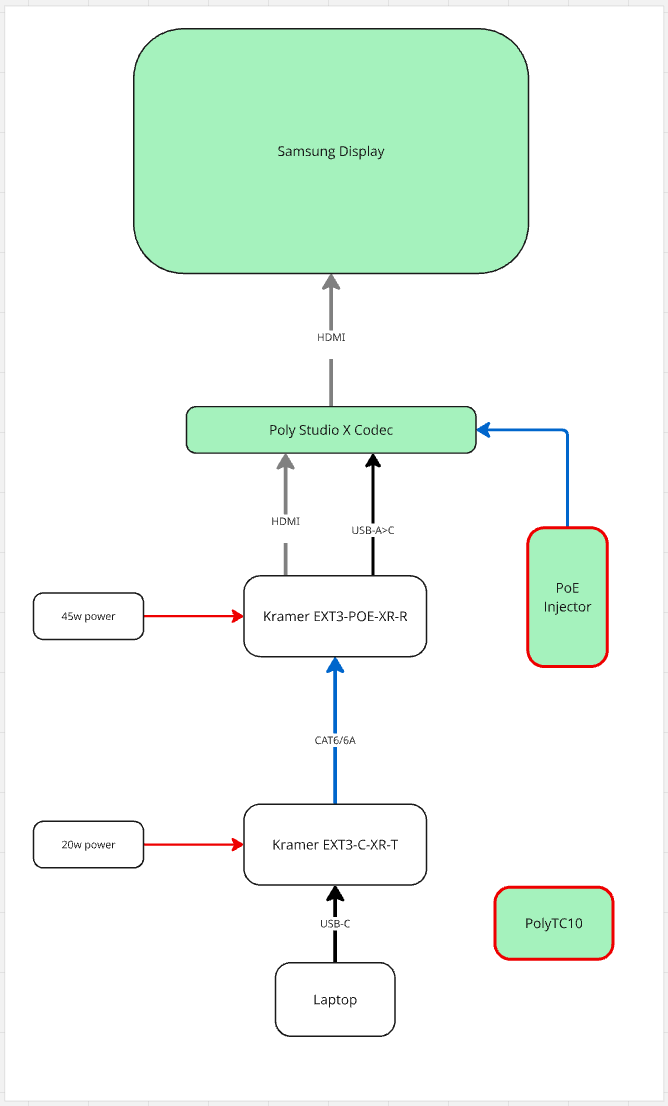 | 1 | Poly | PoE Inline Injector (B5NH6AA) | Poly PoE++ 65W Inline Injector Kit Note: Kit Includes power cord and (1) 3.66m CAT6A cable for Injector LAN/Data input. An additional (1) CAT6A patch cable of appropriate length is required to connect the Injector output to the Poly X32. |